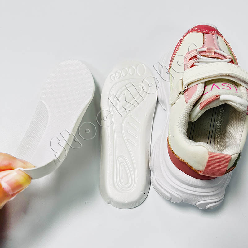 Kids PU sports shoes velcro style running walking sneakers with 7,200 pairs in stock, 2 color patterns and 2 size ranges. Contact us for competitive price.
