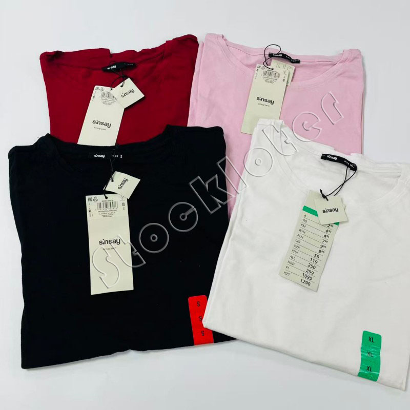 Blusas y camisetas básicas de algodón de punto con cuello redondo para mujer, de marcas europeas reconocidas. 131.151 unidades en stock, 4 colores lisos y 7 tallas. Alta calidad. Contáctanos para obtener un precio fantástico.